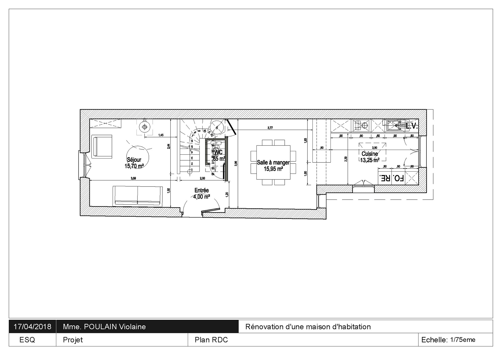 Proposition d'aménagement pour la rénovation d'une maison individuelle.